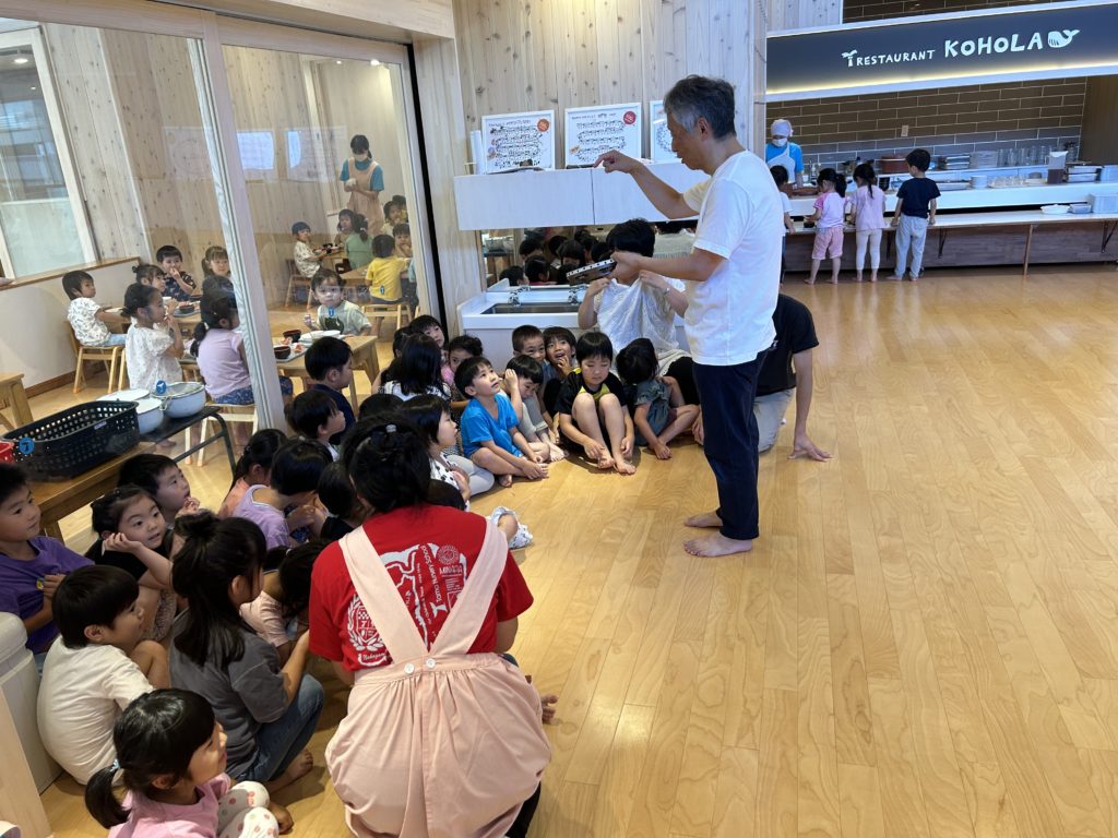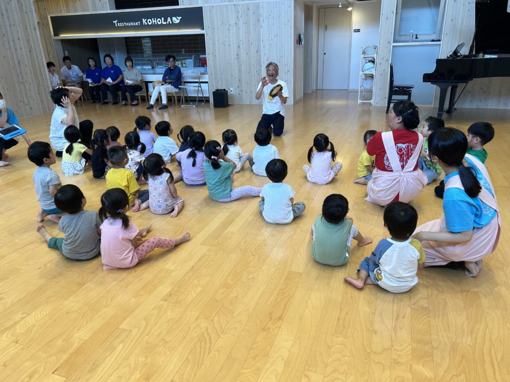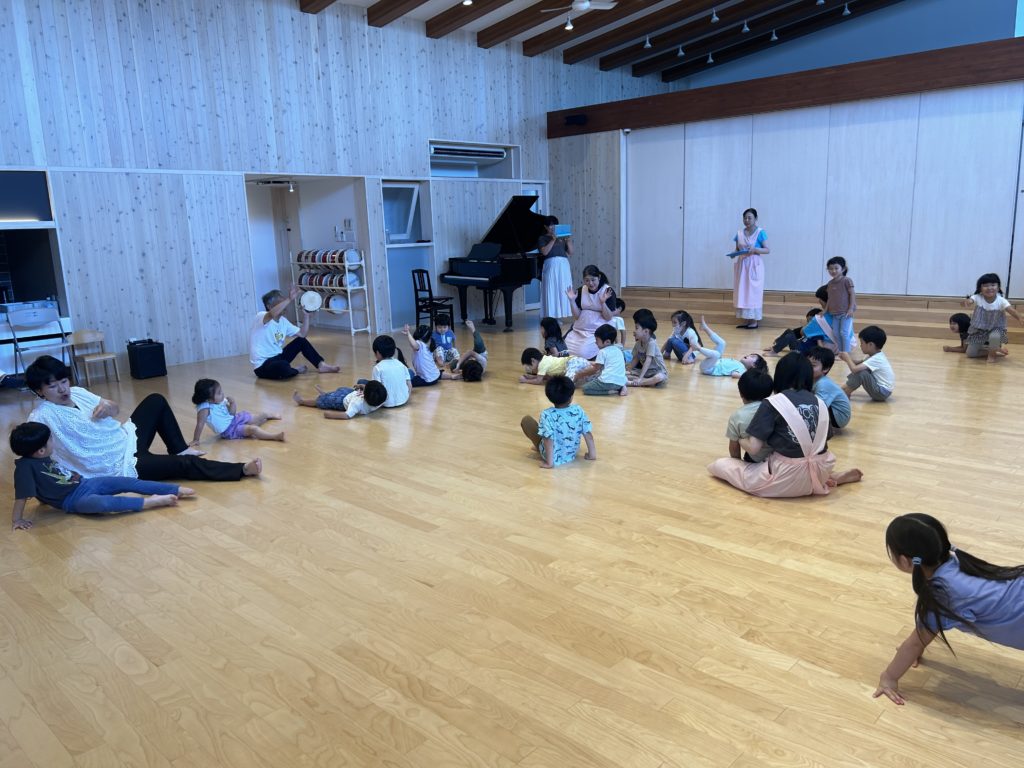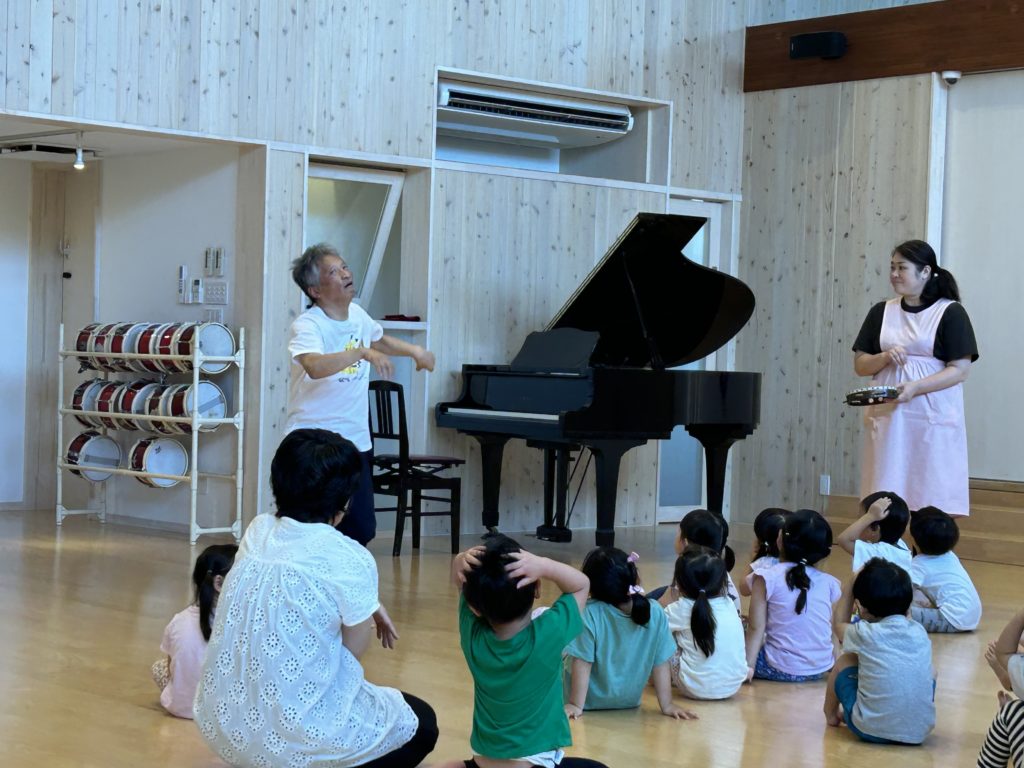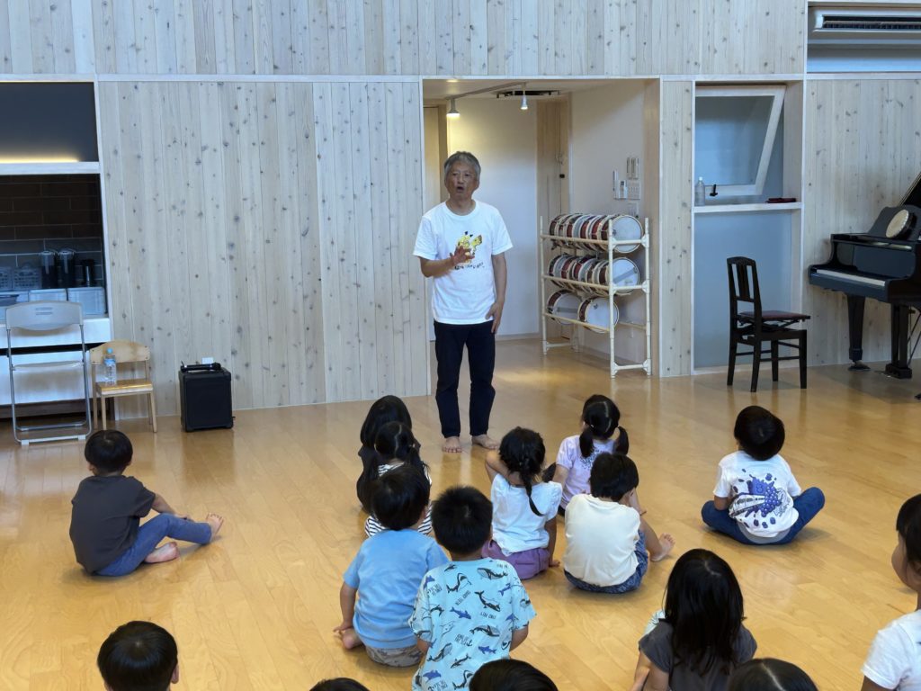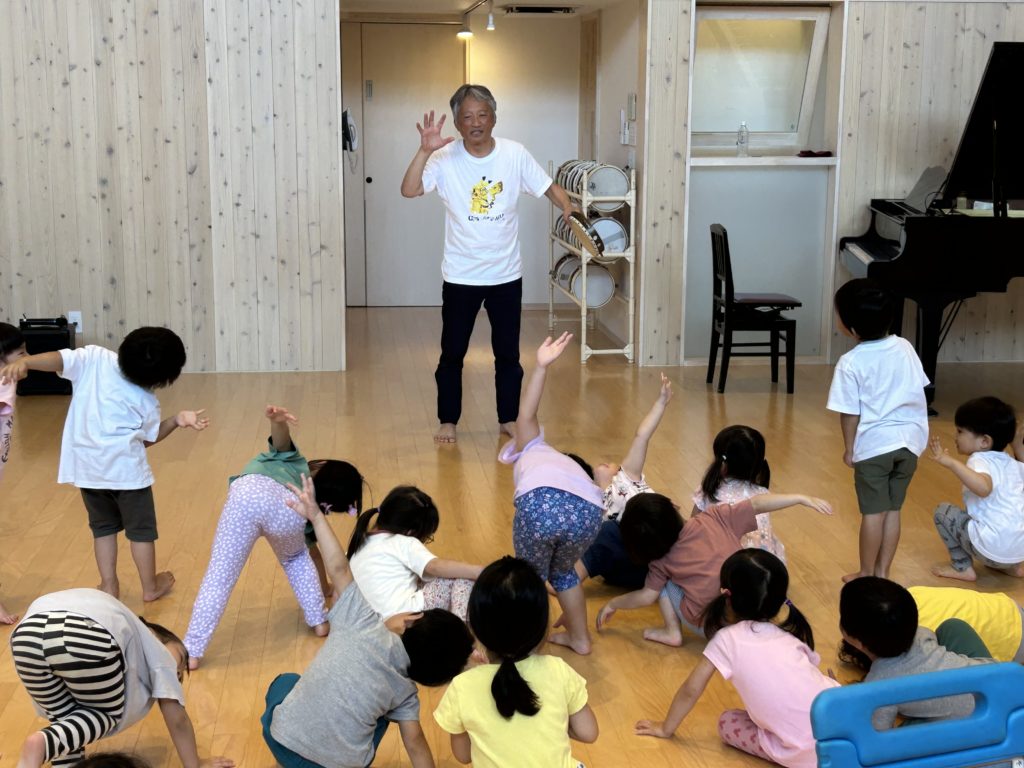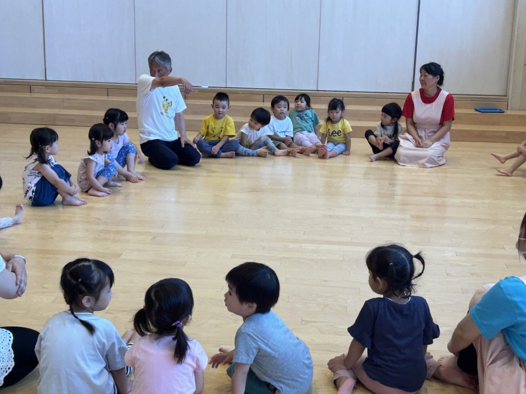 昭島の多摩保育園に表現指導で実力者の白川惠助氏を招き3.4.5歳児の子どもたちは実践指導、その後、関連園の保育士も含めて質疑応答を行い、保育士の皆さんには大変貴重な研修になりました。保育士の明日からの子どもたちへの取り組みに期待がかかります。その後、尾張一宮に移動し、いつものように七夕飾りが優しく迎えてくれました。