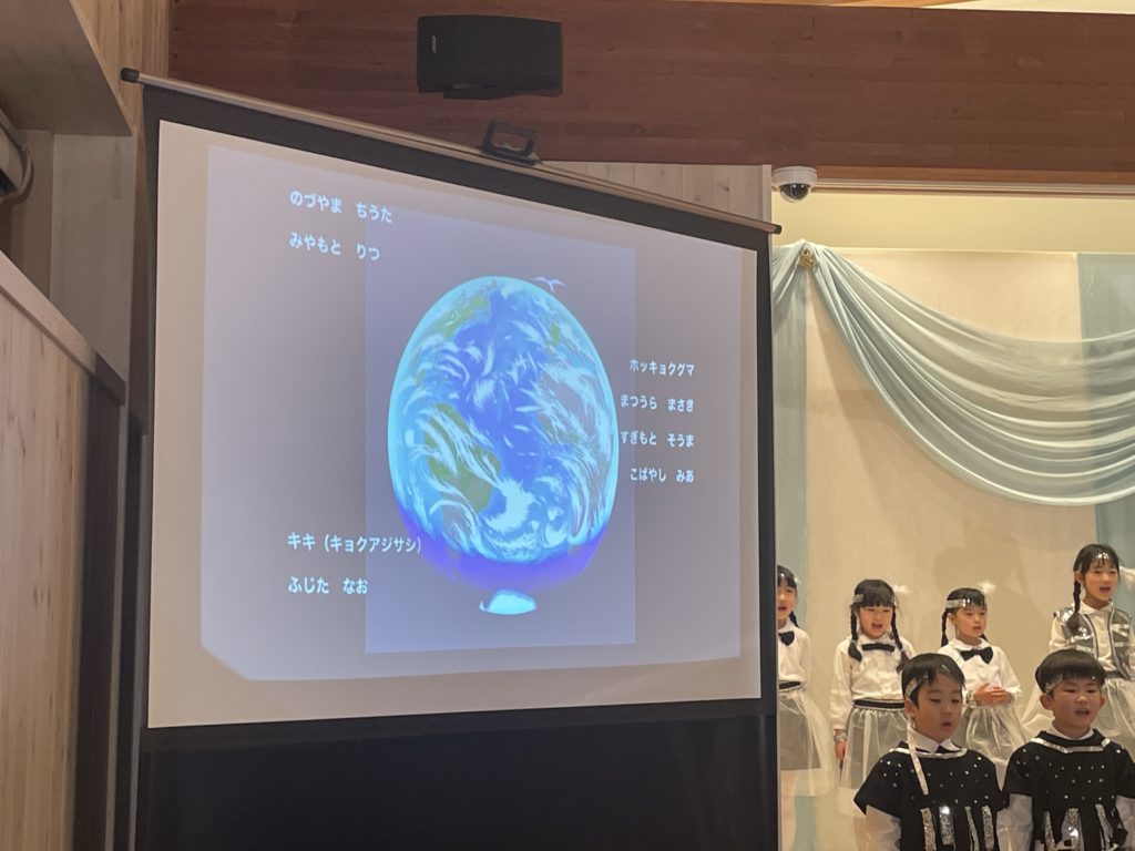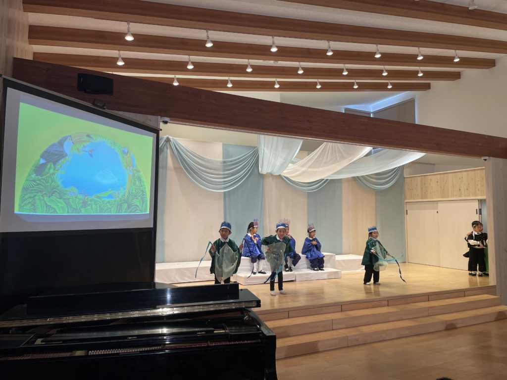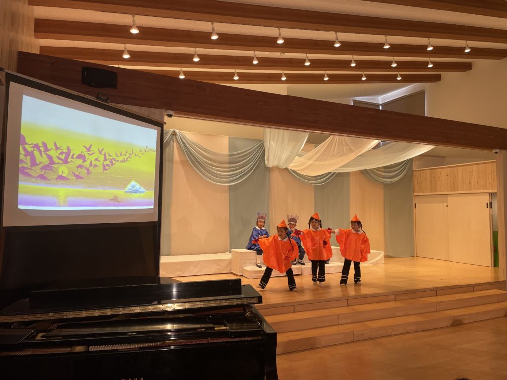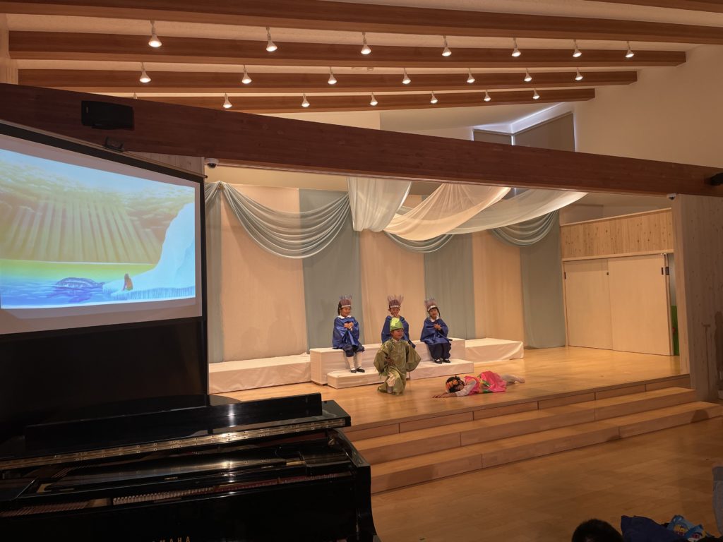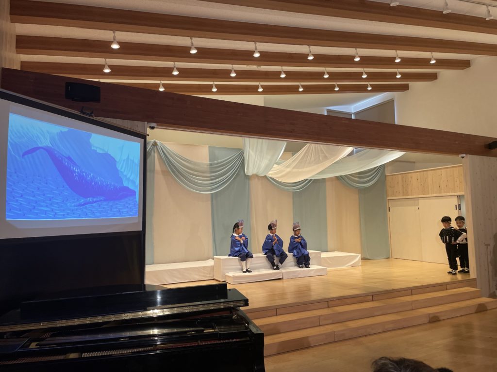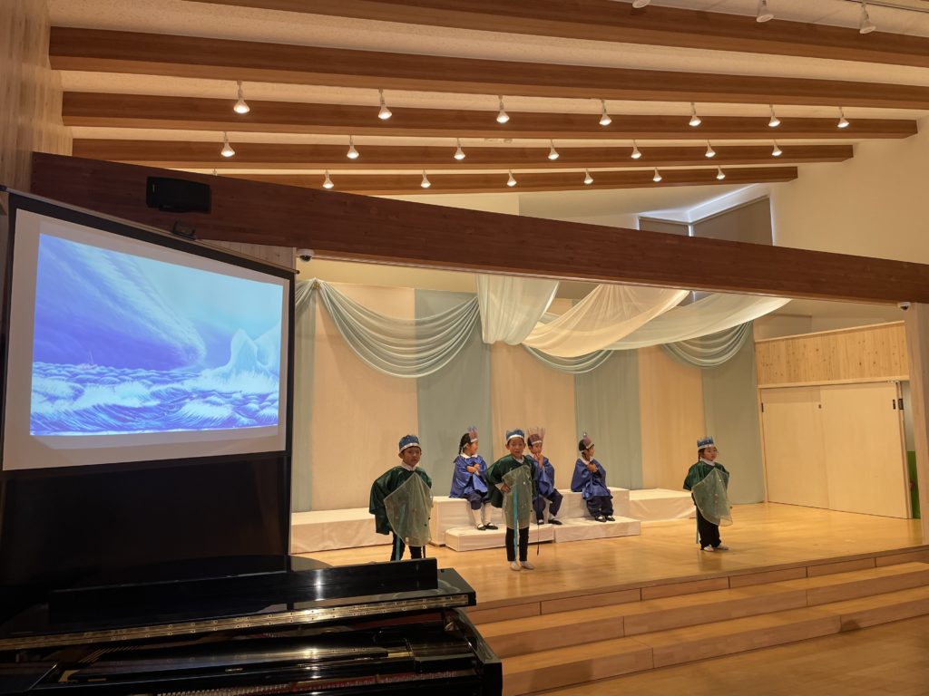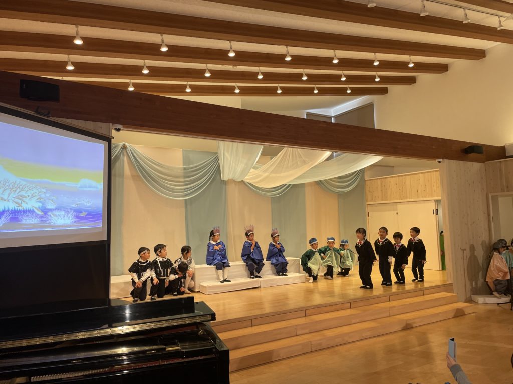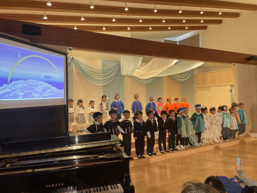 昭島市の保育園の音楽会が今年最後の仕事でした。音楽会は最初にミュージカル、そしてハーモニカ演奏、合奏、うたです。ミュージカルは、高円宮妃久子殿下・文/飛鳥童氏・絵/藤本和道・作曲の「氷山ルリの大航海」です。この作品が出来て以来24年間毎年園の音楽会で発表してきました。来年度は25回目の節目を迎えます。なんとも凄い偉業です。今日の音楽会で今年の仕事は終わりました。