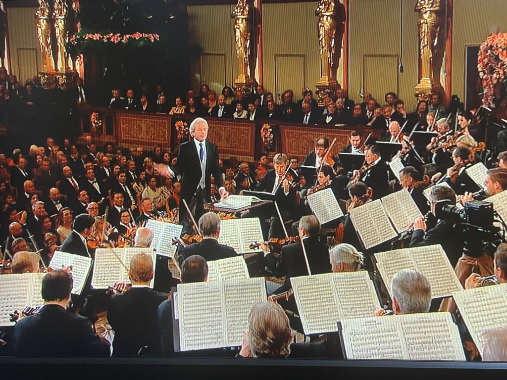 ウィーンの元日の午前11時15分(日本時間午後7時15分から生放送で配信が始まるニューイヤーコンサートは世界中で何億人も観ている超有名なコンサートです。過去15回以上も訪れたウィーン、何回もコンサートで行ったムジーク・フェライン(ウイーン楽友協会)。毎年観ていますが、コロナ禍で3年以上行けず、今年は懐かしさと通常に戻ったウィーンを見て嬉しく思いました。今年は10年ぶりにタクトをとるフランツ・ウィザー・メスト。生粋のウイーン人です。今回のプログラムはほとんどが新作で、今まで演奏されなかったシュトラウスの作品ばかりです。15曲中14曲が新作です。ワクワクしながら聴きました。アンコールは定番の「美しく青きドナウ」そして締めは「ラデツキー行進曲」。ニューイヤーコンサートを観ないと新しい年が始まりません。